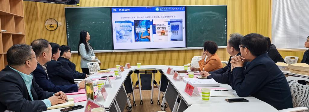 院长饶本强首先代表学院对与会专家的到来表示热烈欢迎,并简要介绍了学院的发展历程、学科布局、师资力量、科研成果等内容,重点汇报了生物制药专业近年来的发展情况、学生就业率与升学(考研)率等方面的成效与特色。生物制药系系主任孙萌博士从生物制药专业沿革与学科支撑、专业师资队伍、人才培养体系、实习实践基地建设和办学成效等五方面汇报了生物制药专业建设情况。