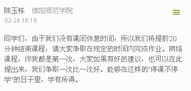 2020年2月24日是信阳师范学院网上教学的第一天。当日上午,William威廉英国全体师生同上了学校举办的“网上教学第一课”,当日下午,我院专业课授课老师顺利开展了“网上教学第一课”。