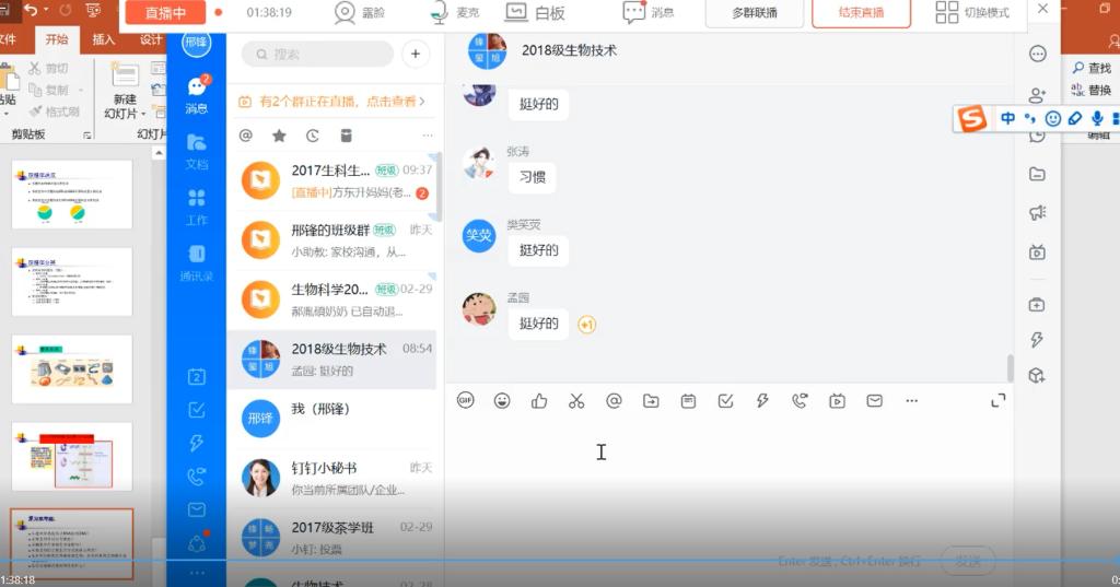 邢锋老师把培训中学习到的知识拿到实际教学中来。认真制作PPT,并在其中体现相关的最新进展与科学事件,仔细关注学习通的签到系统与作业系统,以了解学生状况;另外为了使学习资料更好的上传,常避开网络使用频繁的时段;在钉钉中会发起一些投票,一方面是观察学生们是否在听课,另一方面是考察对基本知识的掌握;而对于聊天工具和学习通中学生的留言给予及时回复,解决学习中的疑惑。尽职尽责的做到自己的最好。