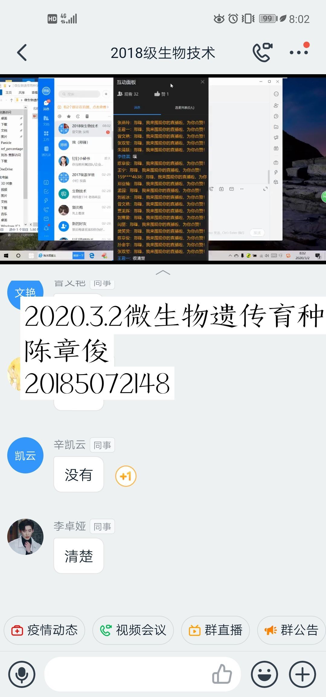 "师者,所以传道授业解惑也 ”。在线授课之余,学生们还通过各种社交软件远程联系老师提出自己的疑问,而老师们也都注意耐心解答,真正实现了开展网课的初衷--停课不停学。