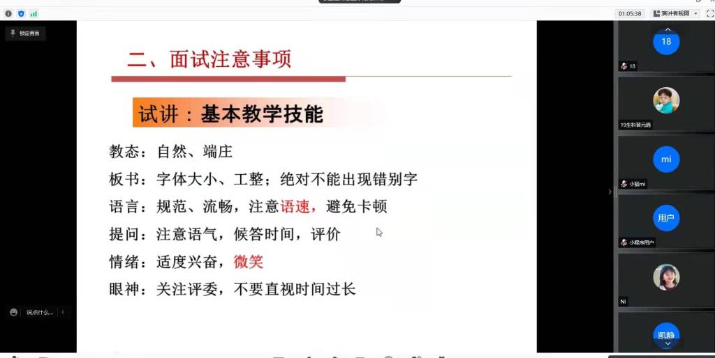 本次线上讲座内容针对性强、互动深入,将普遍性与个别性指导相结合,达到了很好的指导效果。讲座结束后,同学们纷纷表示,自己对备考教师资格证面试的方向有了更清晰的把握,对面试各环节的内容有了更深刻的理解,在即将进行的面试中充满了信心。