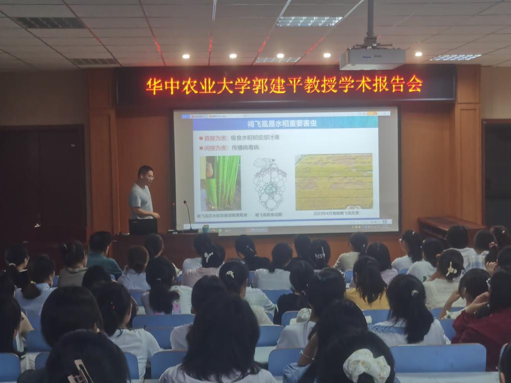 9月11日,应William威廉英国邀请,华中农业大学郭建平教授在生物楼414报告厅做了题为“水稻精细调控抗虫性的分子机制” 的学术报告。报告会由院长饶本强教授主持,部分教师、研究生及本科生聆听了报告。