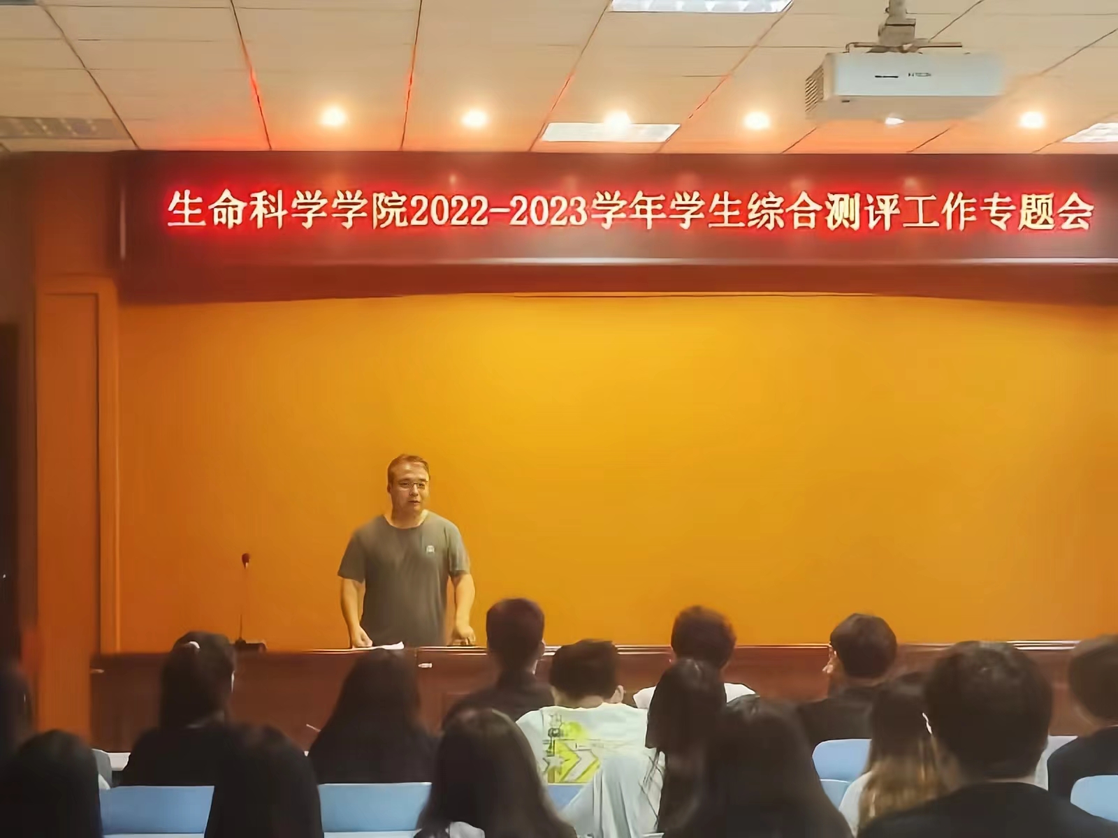 为了综合测评工作的顺利开展,积极配合学校工作,充分发挥综合素质测评在大学生活的激励和导向作用。我院于9月15日晚在生科楼414召开了2022-2023学年学生综合测评工作专题会。本次会议由我院党委副书记荣宪举主持,2020级,2021级,及2022级各班的班长、团支书参加。