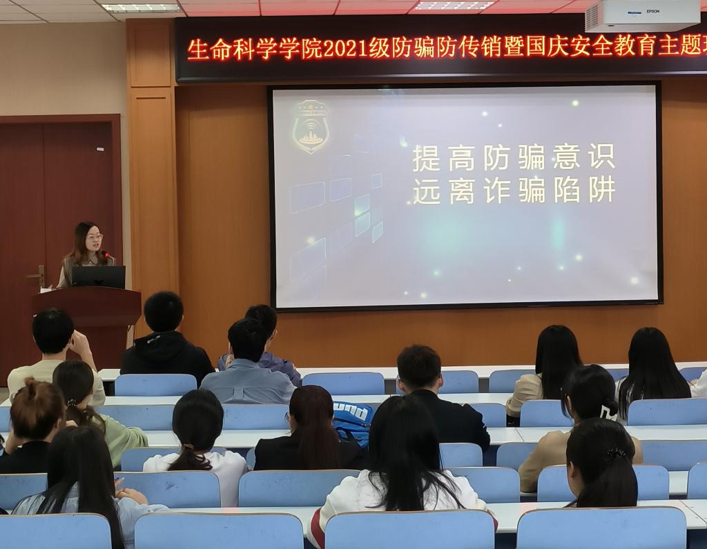 为了扎实做好校园安全防范工作,进一步增强学生防骗意识和自我保护意识,提高学生防诈骗能力。9月26日下午,我院于生科楼414召开2021级防诈骗防传销暨国庆安全教育主题班会。会议由21级专职辅导员朱晓雯主持,21级各班班长、团支书、宿舍长参加。