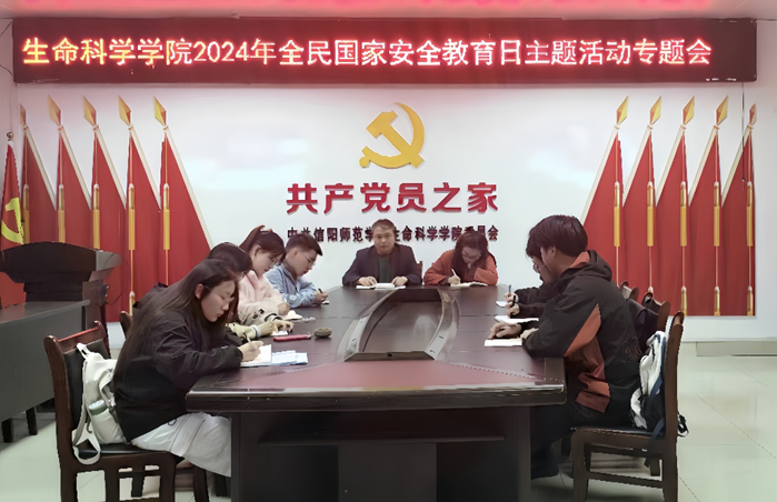 为进一步加强学生的安全意识,提高防范能力,切实对人身安全和财产安全提高警惕。4月7日晚,我院于生科院412召开2024年全民国家安全教育日主题活动专题会,我院党委副书记荣宪举主持此次会议,分团委书记熊蕾、主席团和部分学生会干部参加。