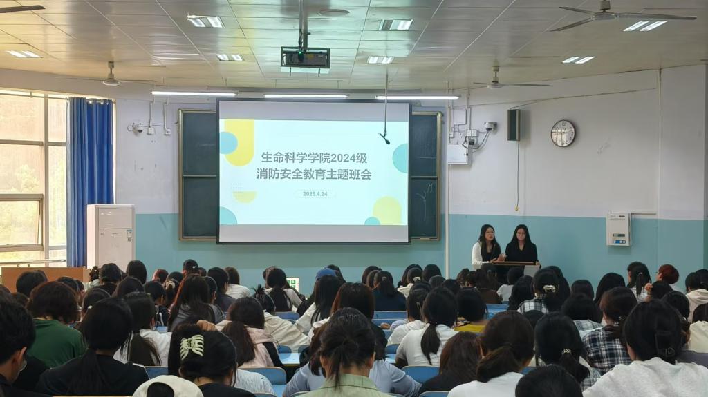 2025年4月24日,我院于教九楼305教室召开消防安全教育主题班会。本次班会由2024级兼职辅导员谷超凡、洪瑞主持,2024级全体学生参与。