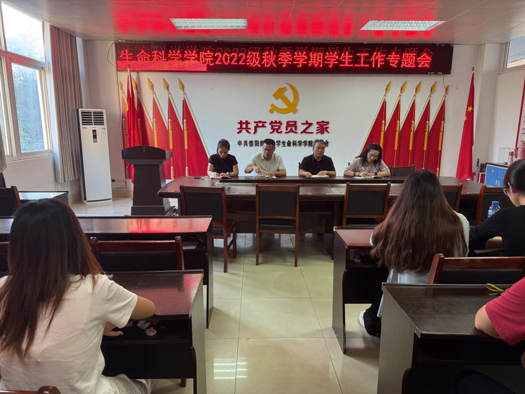 为全面部署秋季学期学生工作,统筹推进学生安全管理、学业发展与身心健康教育,我院于2025年9月1日在生科楼412会议室召开2022级秋季学期学生工作专题会议。此次会议由学院党委副书记荣宪举主持,2022级全体专兼职辅导员、各班班长及团支书参加。