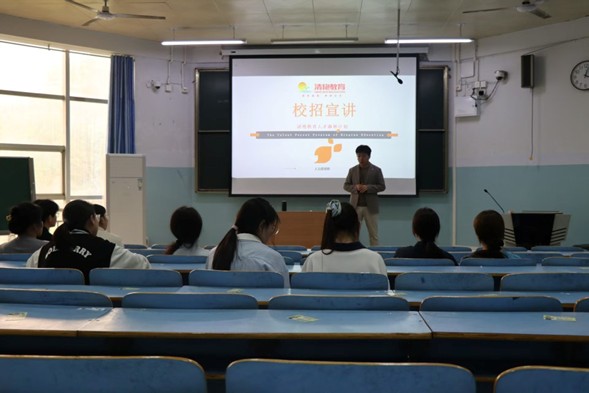为搭建校企合作桥梁,拓宽毕业生就业渠道,助力学子对接优质岗位,2026年4月10日下午,洛阳清艳校外托管服务有限公司专场招聘在我校教九楼305教室顺利开展。本次活动由清艳教育集团洛阳直营校运营总监寇梦泽主讲,我院党委副书记荣宪举到会,我院2021级优秀毕业生王丁奕受邀到场,相关专业毕业生参与。
