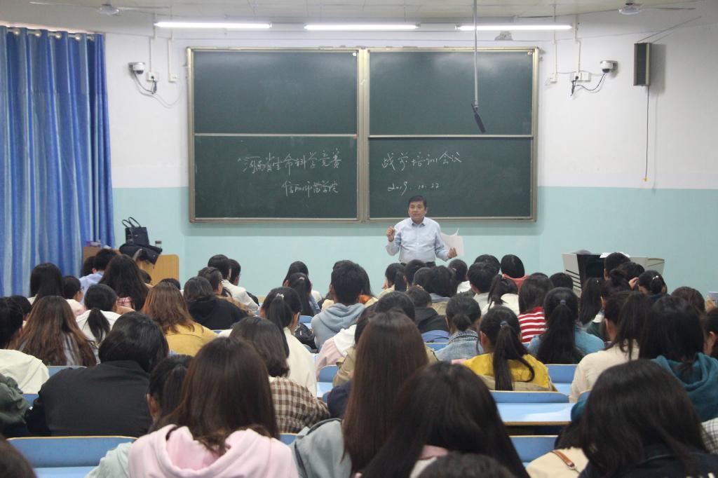 为确保第二届河南省大学生生命科学竞赛顺利举办,切实提升不同岗位志愿者间协同协作,10月22日,我院在教九楼305教室召开以同类赛事为蓝本,分步骤、多环节、“露差错”的“兵棋推演”式培训。此次培训会由我院党委副书记杨霁虹主讲,专职辅导员杨娟娟主持。