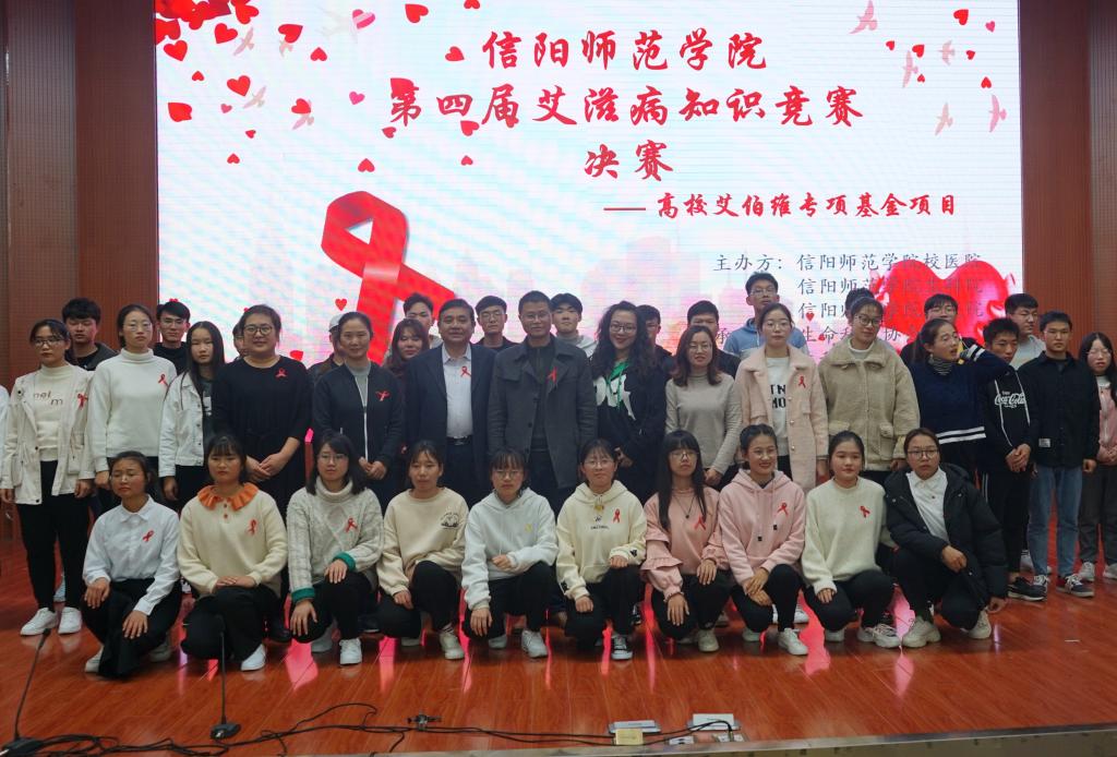 为普及艾滋病预防知识,增强学子们对艾滋病的防治意识。由信阳师范学院校医院,国际教育学院,William威廉英国主办,生命科技协会承办的第四届艾滋病知识竞赛决赛于11月23日在逸夫楼报告厅举办。校医院院长张景伟,校医院办公室主任陈震,我院党委副书记杨霁虹以及团委书记熊蕾等领导老师应邀出席现场,与数百名学子共同观看此次比赛。