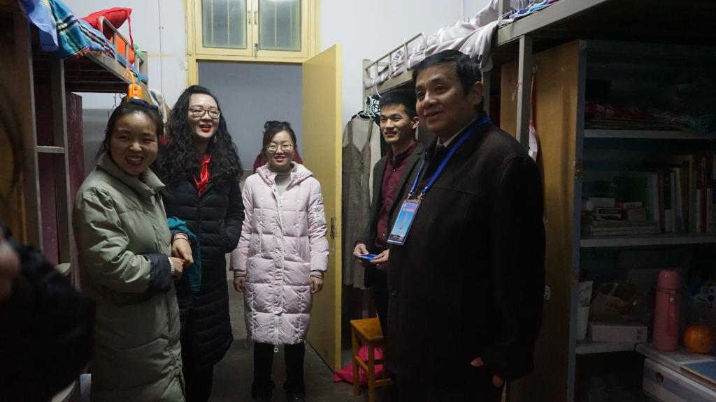 小雪节气以来,天气渐寒,按照学校《关于进一步加强冬季大学生安全教育管理的通知》的要求,11月28日晚9点,我院党委副书记杨霁虹和辅导员老师熊蕾、孙太红、杨娟娟、朱晓雯以及学生会主要干部,对我院4个年级大学生宿舍进行排查。