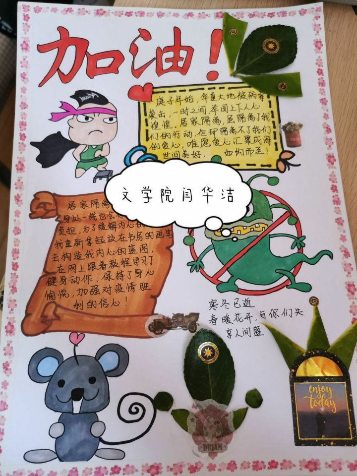 此次活动鼓励参赛选手走出屋门,拥抱自然,通过植物拓印、标本装饰的艺术创作形式来记录表达曾在疫情期间遇到的烦恼压力以及调整心态的有效方法。参赛选手兴致盎然,创作出一幅幅精致唯美、内涵丰富的艺术作品,令人赞不绝口。通过激烈的评选角逐,文学院闫华洁、计算机马佳雯、生科张林芳、传媒王雅灏同学荣获一等奖,历史王晨、生科王静、生科柳洁、美院曹瑞琳、英语张晨、文学院林静文荣获二等奖。