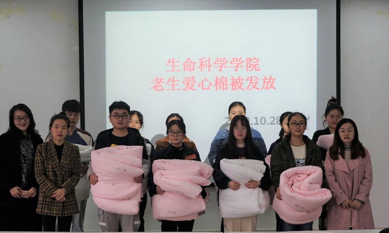 为解决受疫情影响的高年级学子生活之需。10月28日中午,我院于生物楼414多媒体教室举行2020冬季棉被发放活动。团委书记、2018级专职辅导员熊蕾,资助专员、2017级专职辅导员朱晓雯、2019级专职辅导员杨娟娟共同参与本次活动。