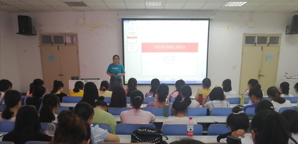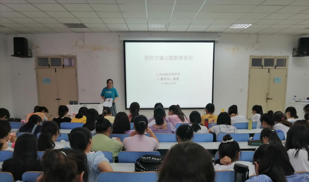 为维护考试的公正性和严肃性与加强众学子安全防范意识。6月27日,我院2018级学子于生物楼414多媒体教室开展诚信考试与预防诈骗主题宣传班会。2018级专职辅导员熊蕾出席并主持会议。