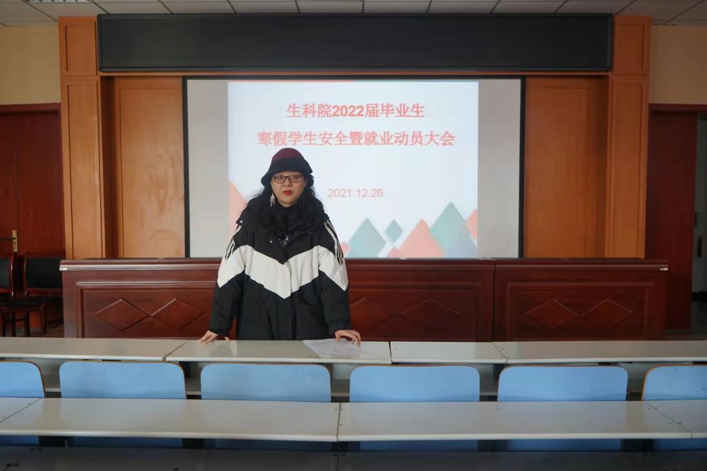 为进一步加强寒假期间学生安全意识及教育管理,保证学生安全返家,同时,帮助大四学子认识就业形势,做好就业准备,2021年12月27日,我院于生科楼414举办2022届毕业生寒假学生安全暨就业动员大会,辅导员熊蕾,李敏,2022届毕业生全体成员参加此次会议。