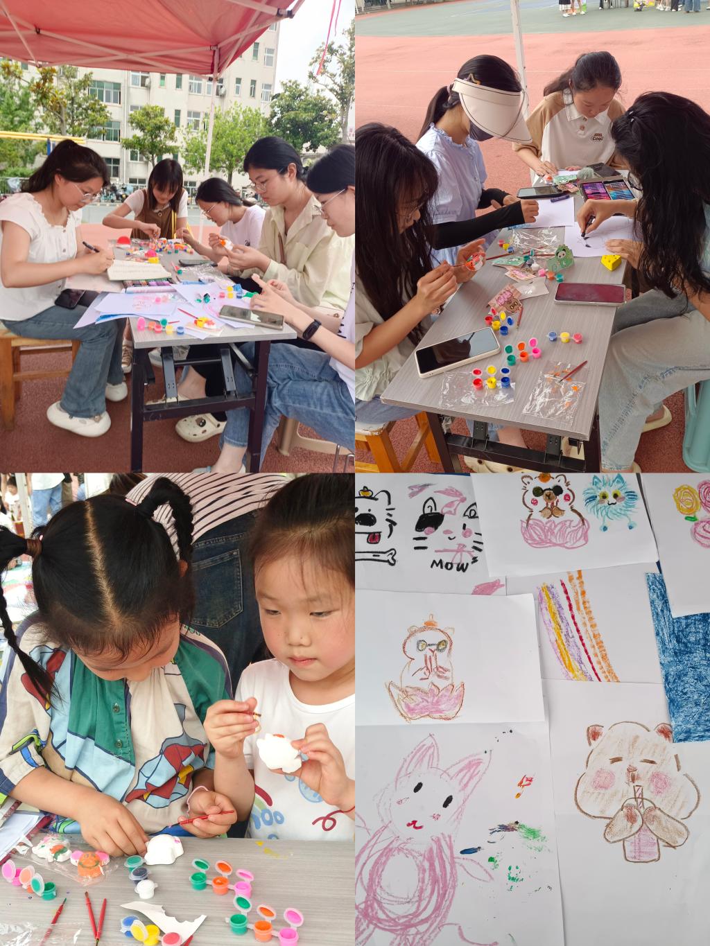 本次心理游园会精心设计了个人挑战和团队协作相结合的多种趣味互动游戏,为同学们提供了多样化的参与体验。游戏主要分为“倒放大挑战”、“猜五官”、“心会同频,共创美好”和“加字游戏”四个环节。单人游戏“倒放大挑战”,参与者通过模仿和猜测倒放的句子可以考验专注力,缓解焦虑情绪;双人游戏“猜五官”,两人快速问答指认五官,考验反应与协调能力;团体游戏“心会同频,共创美好”,通过接力作画以非语言交流完成主题创作并分享感悟,帮助参与者表达情绪,培养团队协作能力;还有“加字游戏”,多人依次扩展词语成句,锻炼逻辑与即兴表达能力。活动通过轻松有趣的形式促进心理调适,现场气氛热烈,深受师生欢迎。