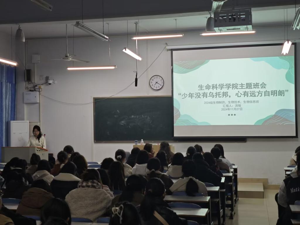 为帮助学生明确设定目标、评估自身现状、掌握人生方向和未来规划,11月27日,我院召开主题班会“少年没有乌托邦,心有远方自明朗”,会议由2024级辅导员洪瑞主持,2024级生物制药班、生物技术班和生物信息班各班同学参加。