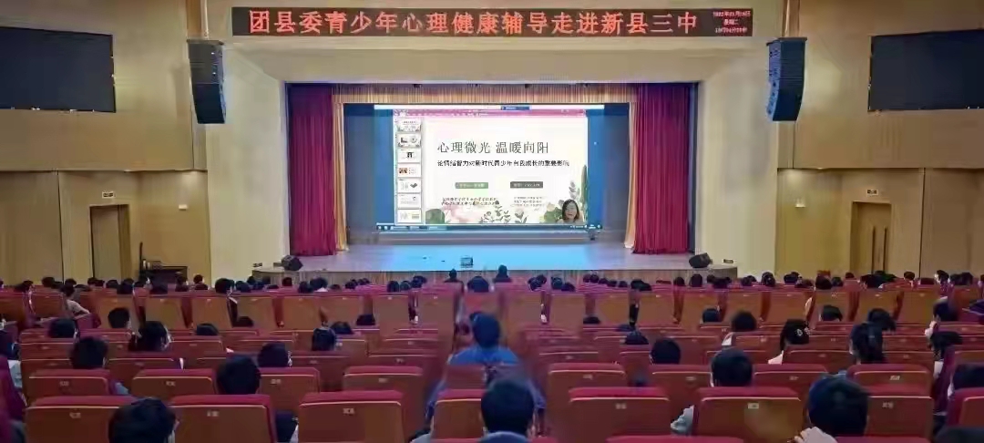 河南新县作为鄂豫皖苏区的首府,不仅是全国著名的革命老区和将军故里,更是红色基因传承圣地。本着反哺革命老区,提升新县青少年心理健康服务水平,高标准高质量落实2022年信阳市重点民生实事项目,把实事办好,把好事办实,3月29日,我院心理咨询师朱晓雯应信阳市新县团县委邀请,为新县第三初级中学学生开展了一场题为“心理微光 温暖向阳”线上心理健康视频直播课。团县委书记程率、县三中校长胡永红出席此次活动,参加会议的还有团县委、县教育局、县三中其他相关负责同志,报告厅主会场300余名学生及分会场全校52个班级同时收看。