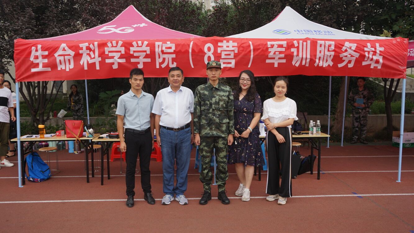 9月14日,我院2017级优秀学子徐朝阳即将奔赴军营的前夕,在新生军训现场为2019级31名男生做入伍报国的现身演说,我院党委副书记杨霁虹,武装干事熊蕾,2017级专职辅导员孙太红、朱晓雯,2019级专职辅导员杨娟娟等领导老师参加,在学校东操场军训现场与徐朝阳热烈交谈。