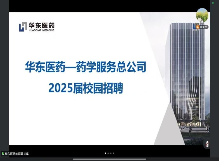 为进一步促进应届毕业生高质量充分就业,使他们更好地了解医药行业就业市场。我院于3月28日成功举办华东医药股份有限公司线上招聘宣讲会,学院党委副书记荣宪举、就业秘书张博及2025届毕业生近80人参加。