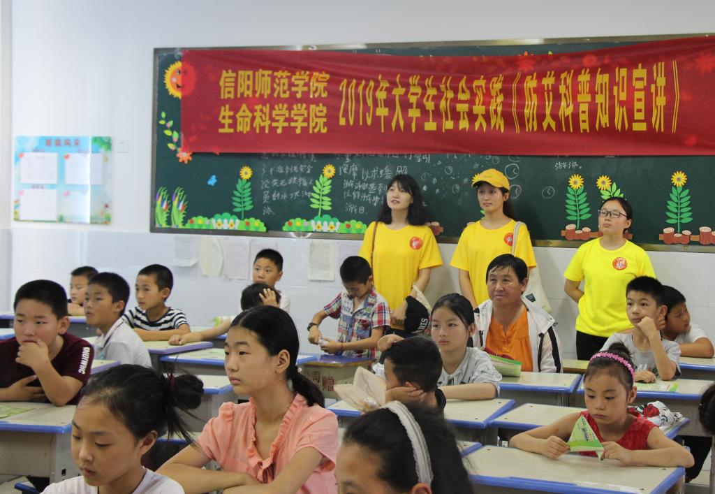 7月6日,我院暑期“三下乡”社会实践小分队,在党委副书记杨霁虹,专职组织员孙太红的带领下,来到平桥区洋河镇中心学校陆庙小学,开展“防艾”宣传教育活动。