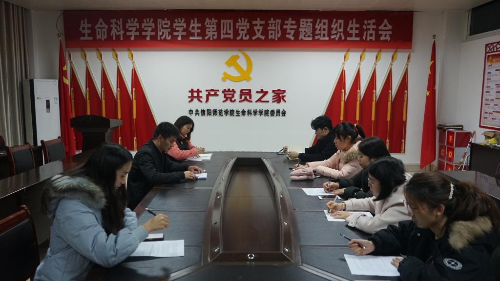 12月9日,我院学生第四党支部于生物楼412会议室召开“不忘初心、牢记使命”主题教育专题组织生活会,学院党委书记李向阳会前指导并对组织生活会的召开提出明确要求。会议由学生第四党支部书记孙太红主持。