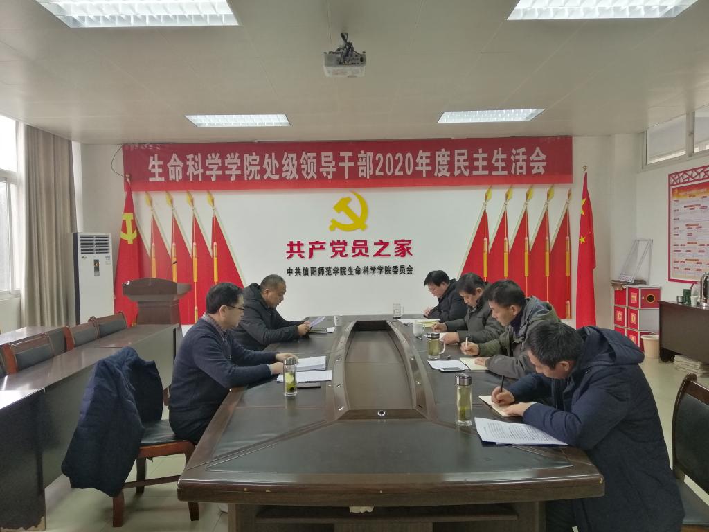 1月20日,我院于生科楼412会议室--党员之家,召开处级党员领导干部2020年度专题民主生活会。院党委书记李向阳,院长袁红雨,党委副书记杨霁虹,副院长兼党委副书记宋新强,副院长张海宾,校遗传研究所副所长饶本强等同志参加本次会议。会议由李向阳主持。