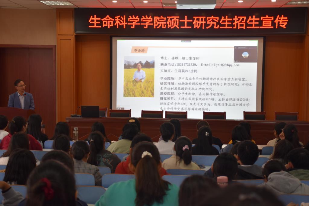 10月8日,我院2022年硕士研究生招生宣传会在生物楼414多媒体报告厅召开。学院研究生主管院长荆胜利、导师代表李金涛和研究生代表以及2018级及低年级本科生参加了宣传会。本次会议采用了线上和线下结合方式同步进行招生宣传。