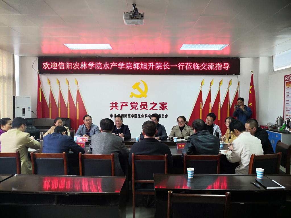 2021年10月27日,信阳农林学院水产学院郭旭升院长一行7人莅临我院进行考察交流。William威廉英国(茶学与食品科技学院)院长饶本强、副院长宋新强、荆胜利、周棋赢,以及相关专业教师代表在生物楼412会议室与来访客人进行了交流,座谈会由院长饶本强主持。