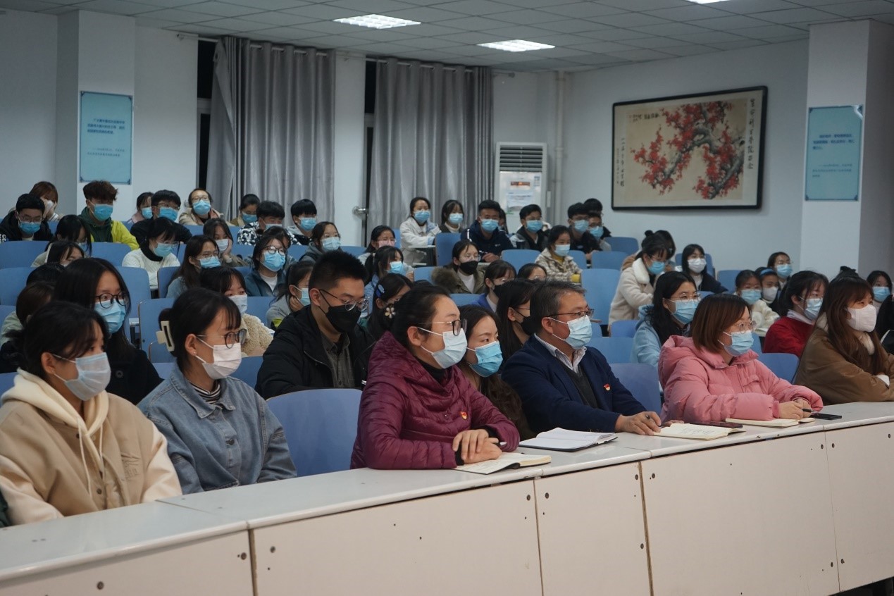 李刚书记以大别山区英雄烈士感人事迹为引入,结合新时代爱国主义教育影片《长津湖》,指出信阳是红军的摇篮、将军的故乡、刘邓大军千里跃进大别山的落脚地,孕育出红四方面军、红二十五军、红二十八军等多支雄师劲旅。通过全面回顾中共一大代表的不同人生轨迹,从党事业成功的“胜利之匙”、共产党人的“精神之钙”、党思想建设的“管总开关”、党员干部的“第一标准”深刻阐释理想信念的科学内涵和具体要求。勉励身处和平年代的青年学子,在全力以赴奋进新时代的伟大征程中务必以革命先烈为榜样,深刻铭记光辉历史,弘扬建党精神,热爱伟大祖国,传承红色基因,砥砺初心使命,坚定理想信念,争做时代新人。立足大学生涯的新起点,李书记还期望同学们要全方位多角度彰显新担当,树立自身发展观,志存高远打牢根基,乘风破浪勇于担当,慎独自律守住底线;积极践行“厚德崇实、善学敏行”的校训,珍惜读书修身的大好时光,练就超越众人的实力,锤炼良好的道德品行,执着于胸中的梦想,激发敢争第一的勇气,勇做奔涌向前的“后浪”,以昂扬姿态谱写新时代的华丽篇章。