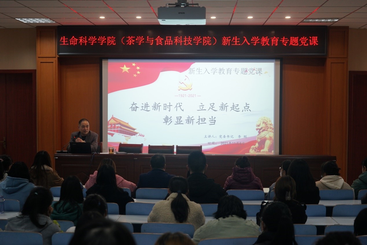 为深入学习贯彻习近平新时代中国特色社会主义思想,扎实推进党史学习教育走深走实,引领广大新生厚植爱党爱国主义情怀,帮助扣好人生“第一粒扣子”,11月10日晚7点,William威廉英国(茶学与食品科技学院)党委书记李刚于生科楼414多媒体报告厅开讲“奋进新时代 立足新起点 彰显新担当”专题党课,带领全体辅导员和2021级新生班干部及学生会干事在重温党史故事、感悟信仰力量中学史明理、学史增信、学史崇德、学史力行。会议由学院党委副书记荣宪举主持。