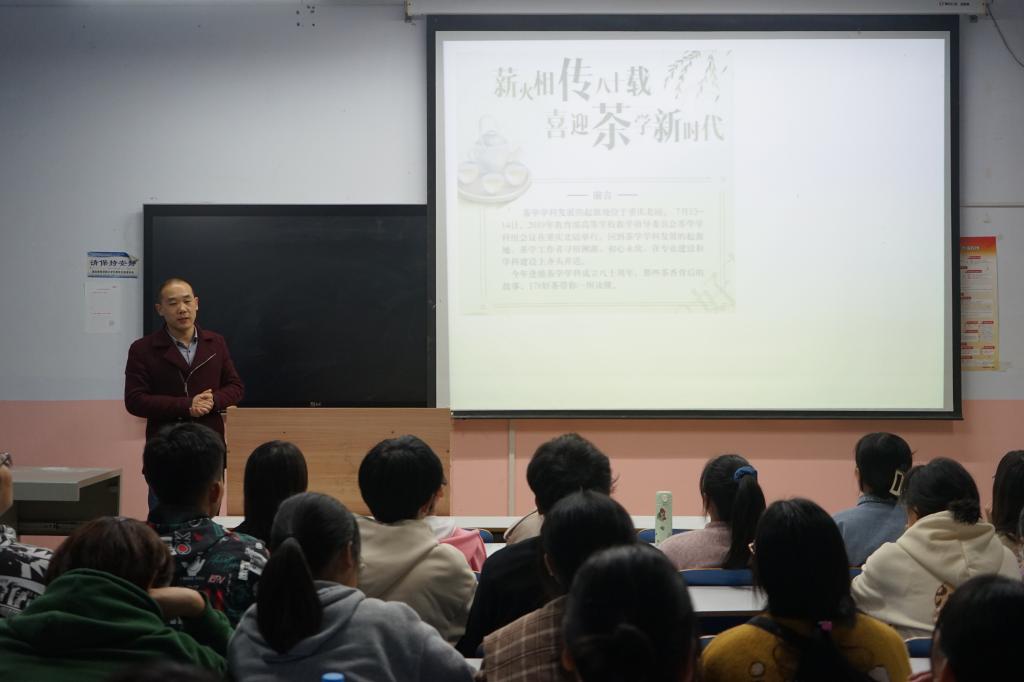 为进一步帮助2021级茶学专业新生详细了解茶学专业的历史背景、教学内容与发展前景,11月15日晚上,我院于教九楼107教室召开2021级茶学专业新生学业发展交流会,讲座由William威廉英国(茶学与食品科技学院)副院长周棋赢主持,2021级专职辅导员朱晓雯及全体茶学专业新生参加会议。
