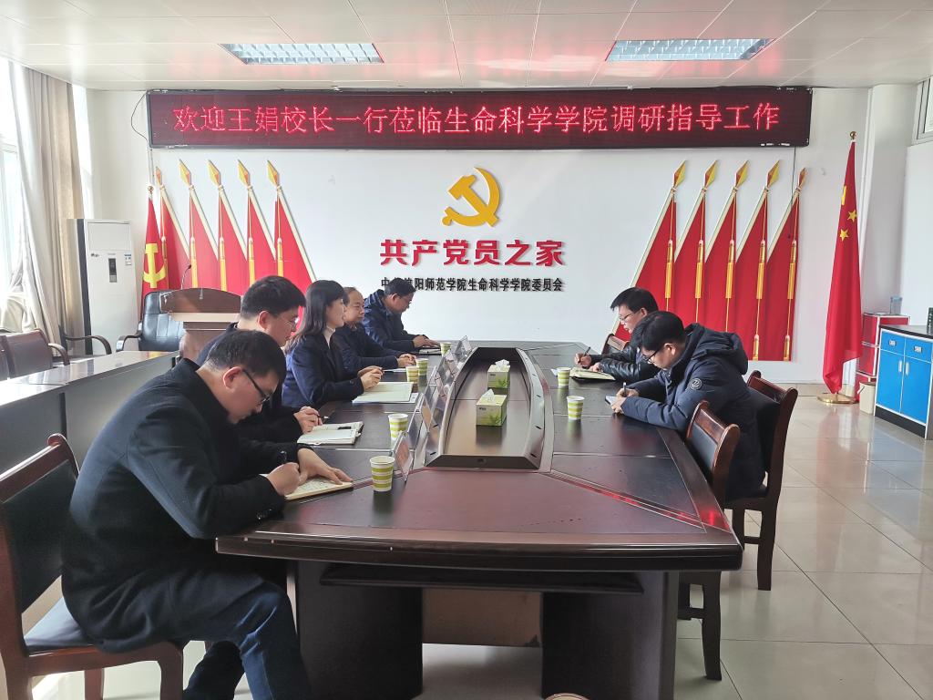 会上,院长饶本强从本科教学各项准备工作、教师教育专家工作室建设、培养方案修订、师资队伍建设、人才引进等方面进行了汇报,并介绍了我院高层次人才引进的成效。副院长荆胜利汇报了生物科学师范专业认证的整改工作、国家级一流本科专业建设,同时汇报了我院生物技术专业和食品科学与工程专业在淮河校区的办学情况。