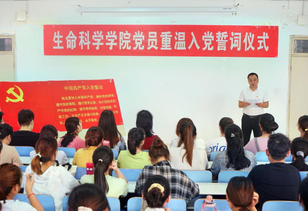仪式在雄壮的《国际歌》声中拉开帷幕。学院党委书记李向阳首先带领全体党员重温入党誓词。随后,学生党员代表康菡发言,她代表学院全体学生党员向党组织表决心,她说,今天我们面对党旗,重温入党誓词,回想起入党宣誓时的庄严承诺和奋斗决心,增强了我们的光荣感、责任感、使命感。今后无论在任何情形下,都应该坚贞不屈,始终不渝地予以恪守。最后,李向阳代表学院党委讲话。他围绕如何做一名合格共产党员对全体党员提出希望和要求:一是要坚持不懈学习党的理论,二是要对照党员标准做一名合格共产党员;三是要找差距即知即改立行立改。李向阳指出,誓词的每一句话,都有明确要求,我们不能停留在口头上,要落实到行动中。我们要时刻牢记入党誓词,努力为党和人民的事业而努力奋斗。