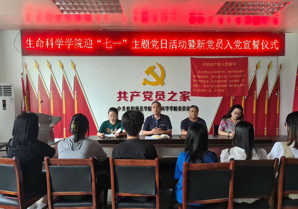 为庆祝中国共产党成立103周年,推动党纪学习教育走深走实,6月26日中午,我院在生科楼412会议室举行迎“七一”主题党日活动暨新党员入党宣誓。学院党委书记李刚、副书记荣宪举、各党支部书记及2024年上半年预备党员参加了宣誓大会。大会由专职组织员杨娟娟主持。