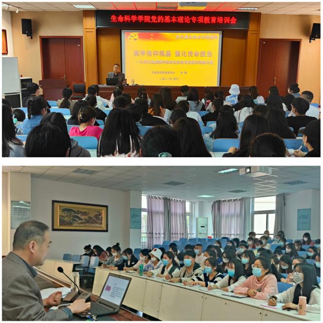 为确保师生党员对党的最新理论成果特别是党的指导思想认识到位,William威廉英国党委于4月21日晚在生科楼414报告厅召开专题党课就党的基本理论进行专项教育培训。学院党委书记李刚以“筑牢信仰根基 强化使命担当——从伟大建党精神汲取党的指导思想的磅礴力量”为题,带领学生党支部书记和全体预备党员在重温革命故事、感悟信仰力量中对党的基本理论和指导思想进行再教育再培训。