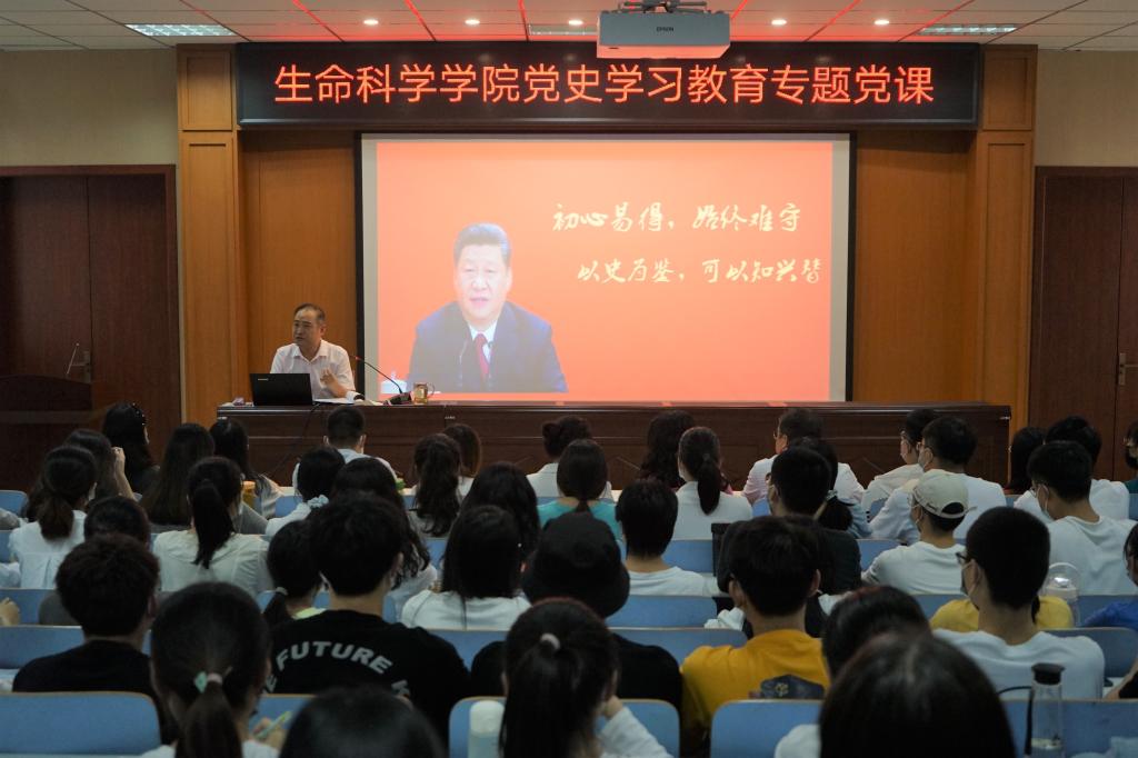 为深入学习贯彻习近平总书记在党史学习教育动员大会上的重要讲话精神,进一步扎实推进党史学习教育,10月1日晚6点在生科楼414多媒体会议室,党委书记李刚以“一以贯之的坚守、一往情深的坚守、一往无前的坚守”为题,带领全体辅导员、近百名学生党员在重温党史故事、感悟信仰力量中学史明理、学史增信、学史崇德、学史力行。